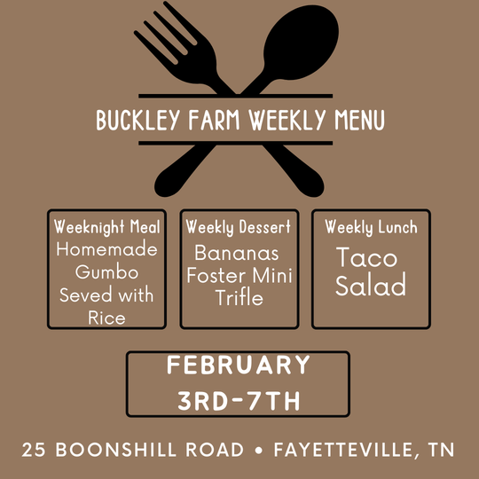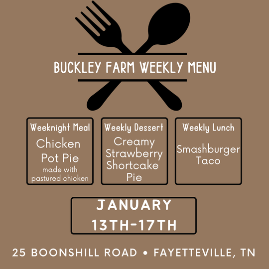 Check out our weekly menu right here each week!! Stop by The Market and stock up on our meats, grab-n-go food items, lunch, Buckley Farm handcrafted soaps, and SO MUCH MORE!!