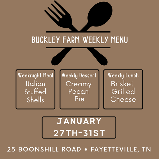 Check out our weekly menu right here each week!! Stop by The Market and stock up on our meats, grab-n-go food items, lunch, Buckley Farm handcrafted soaps, and SO MUCH MORE!!